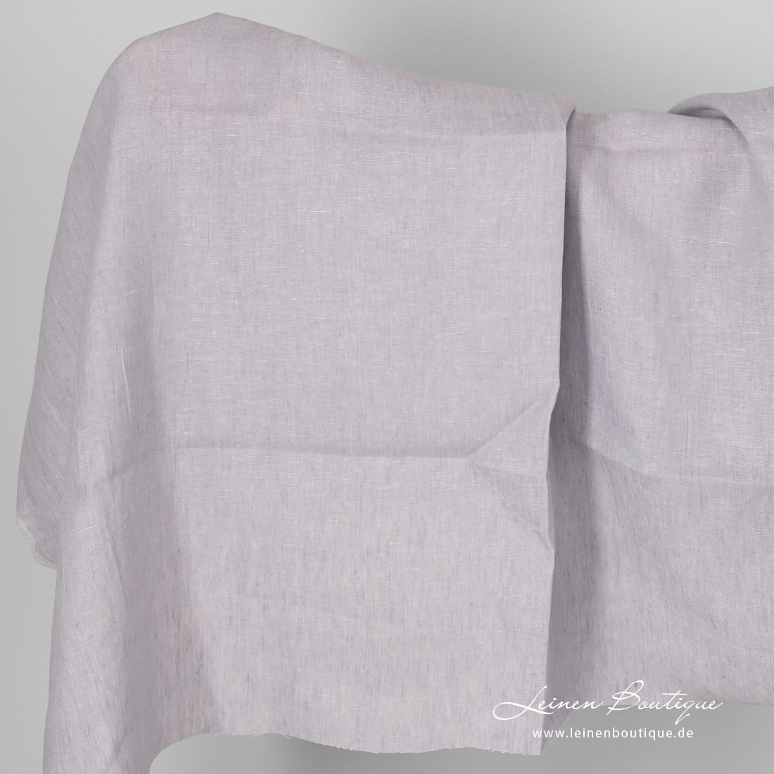 Leinenstoff graulila ist ein Melange-Stoff: beim Weben haben wir graues, leicht ins Violette gehendes, und bläulichgraues Garn kombiniert. Das Reinleinen ist reißfest, dicht, mitteldick, passt zum Nähen von Bekleidung, Heimtextilien.