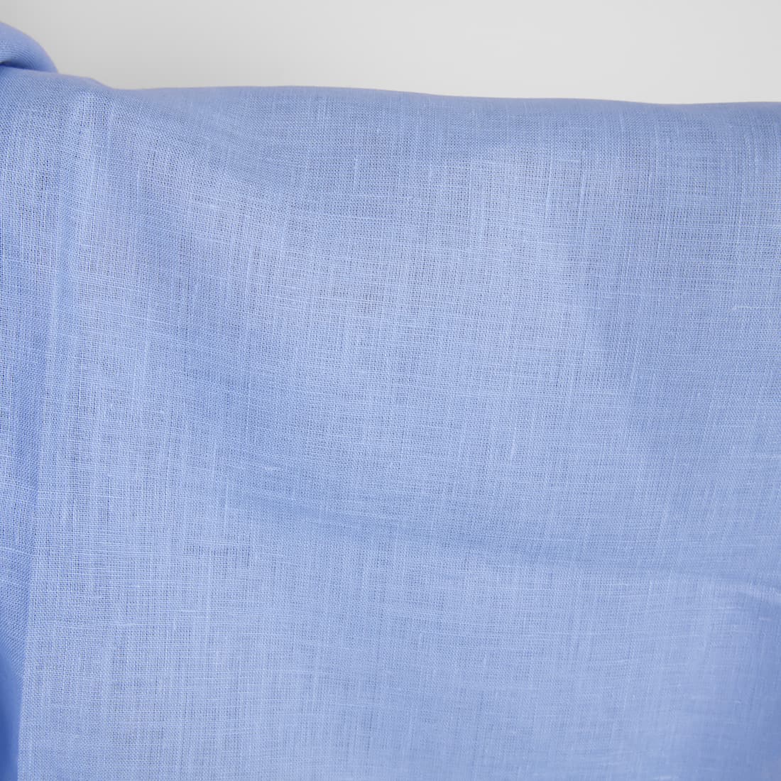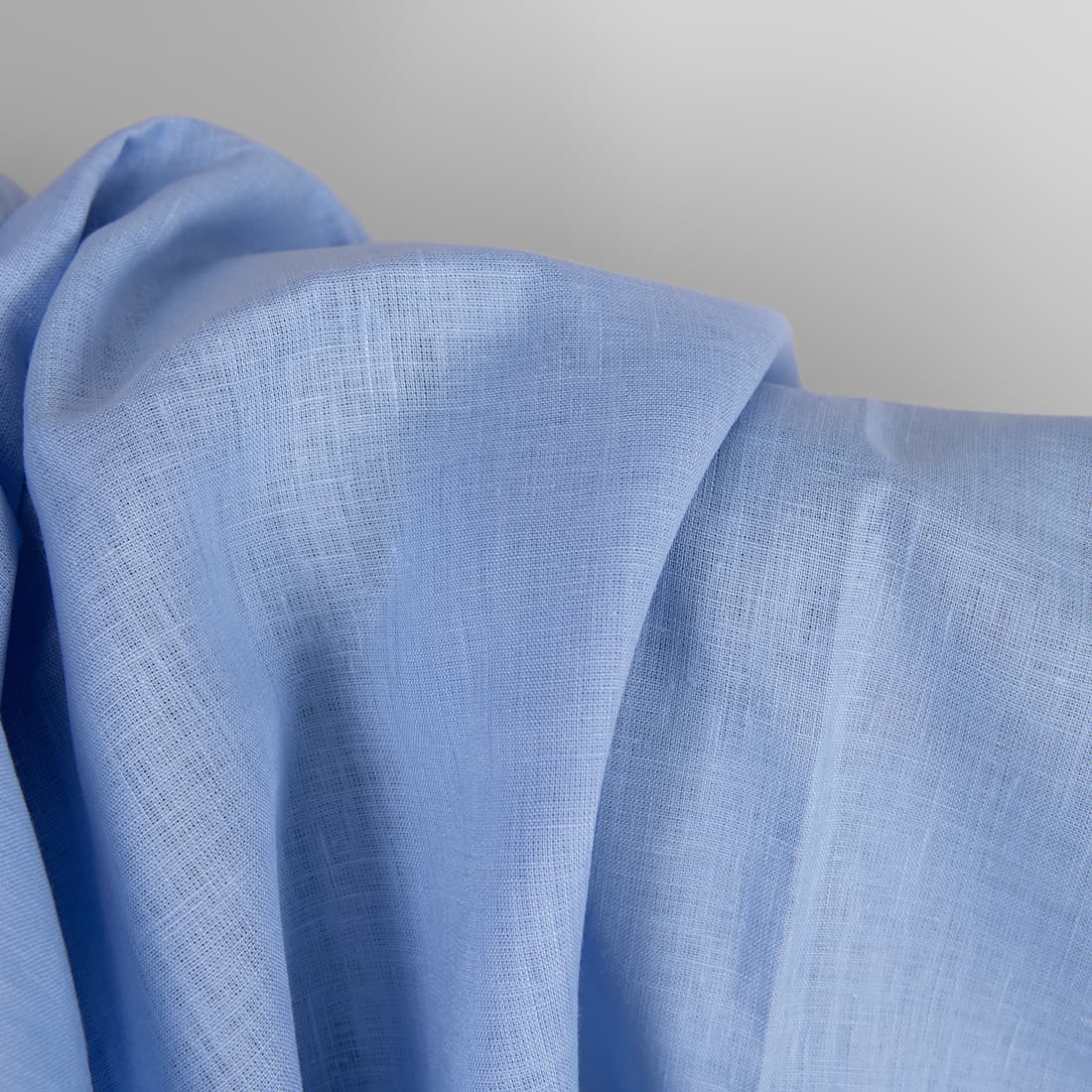 Himmelblauer Leinenstoff in einfacher Leinwandbindung. Dicht gewebt, reißfest, mittelschwer und mitteldick, robust und zudem fein.