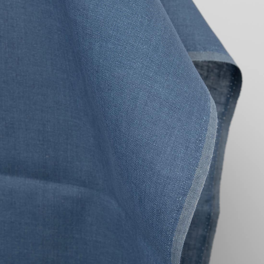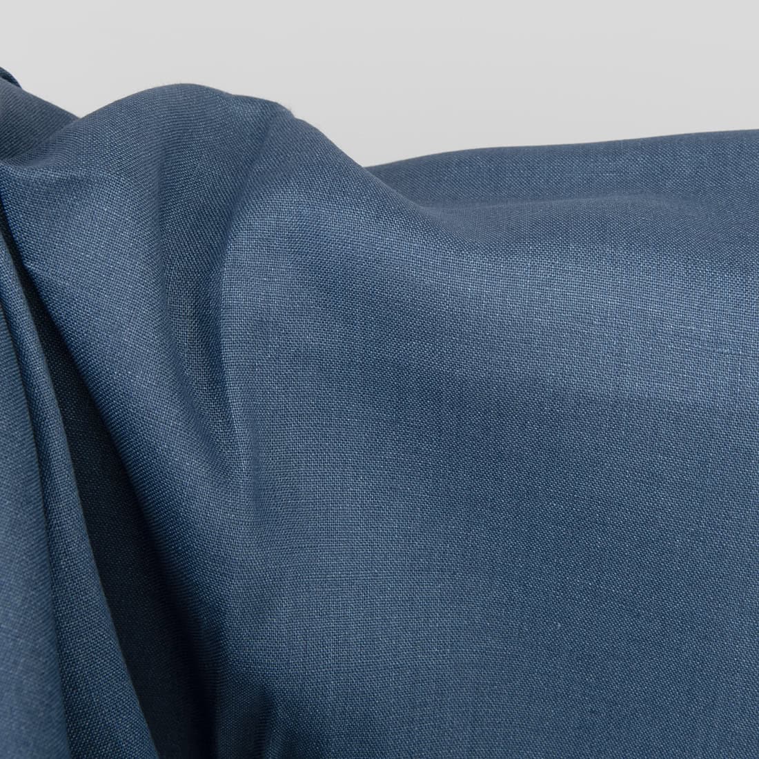 Ziemlich dunkler graubläulicher (jeansblauer) Leinenstoff. Reißfest, robust, dicht gewebt, für Heimtextilien (Bettwäsche, Gardinen, Tischwäsche) und Bekleidung geeignet.