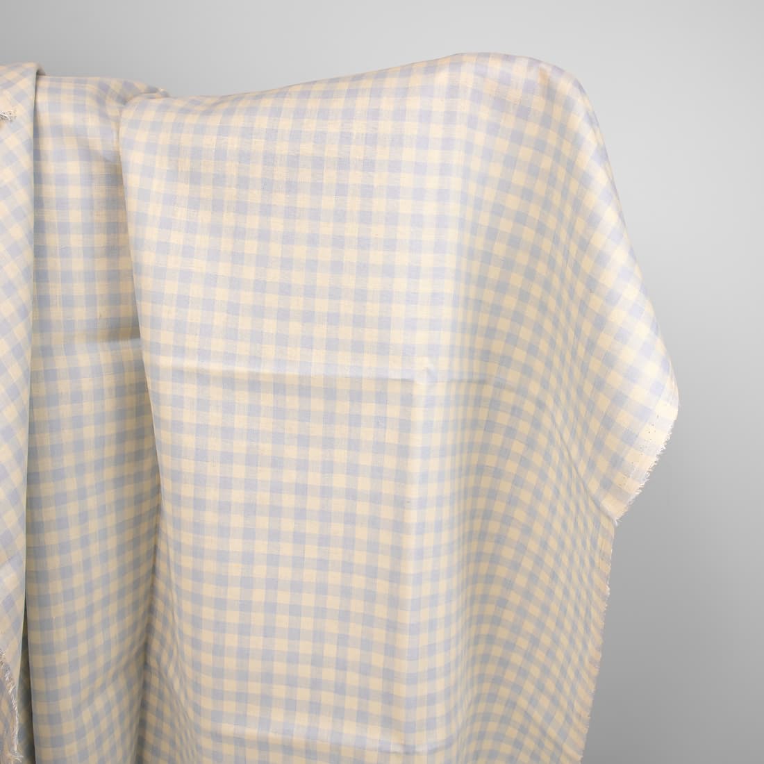 • Karierter Leinenstoff, aus bläulichgrauem und vanillegelbem Garn gewebt