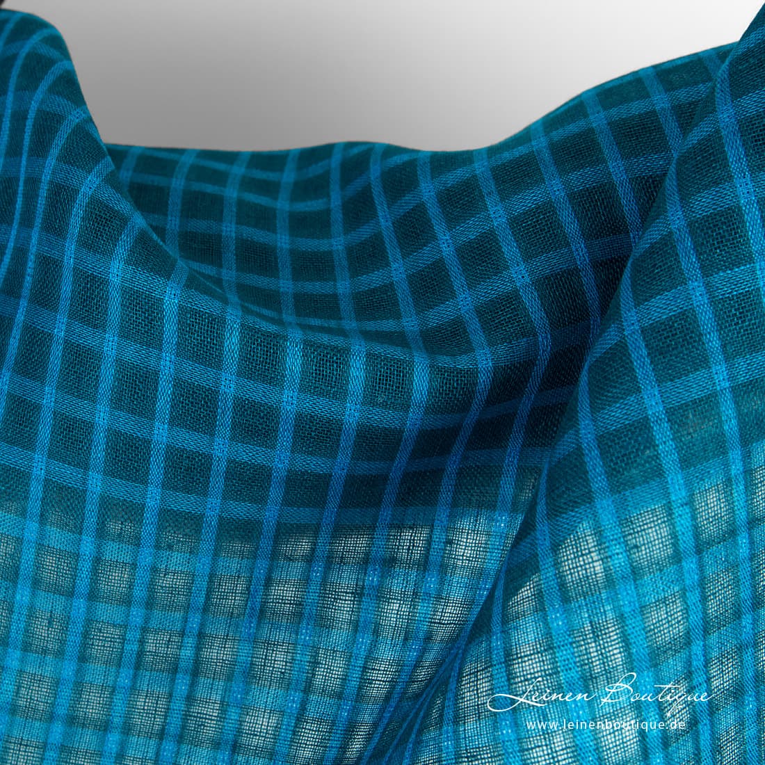 - Muster: Karos. Dunkeltürkis Karos offen gewebt, durchsichtig