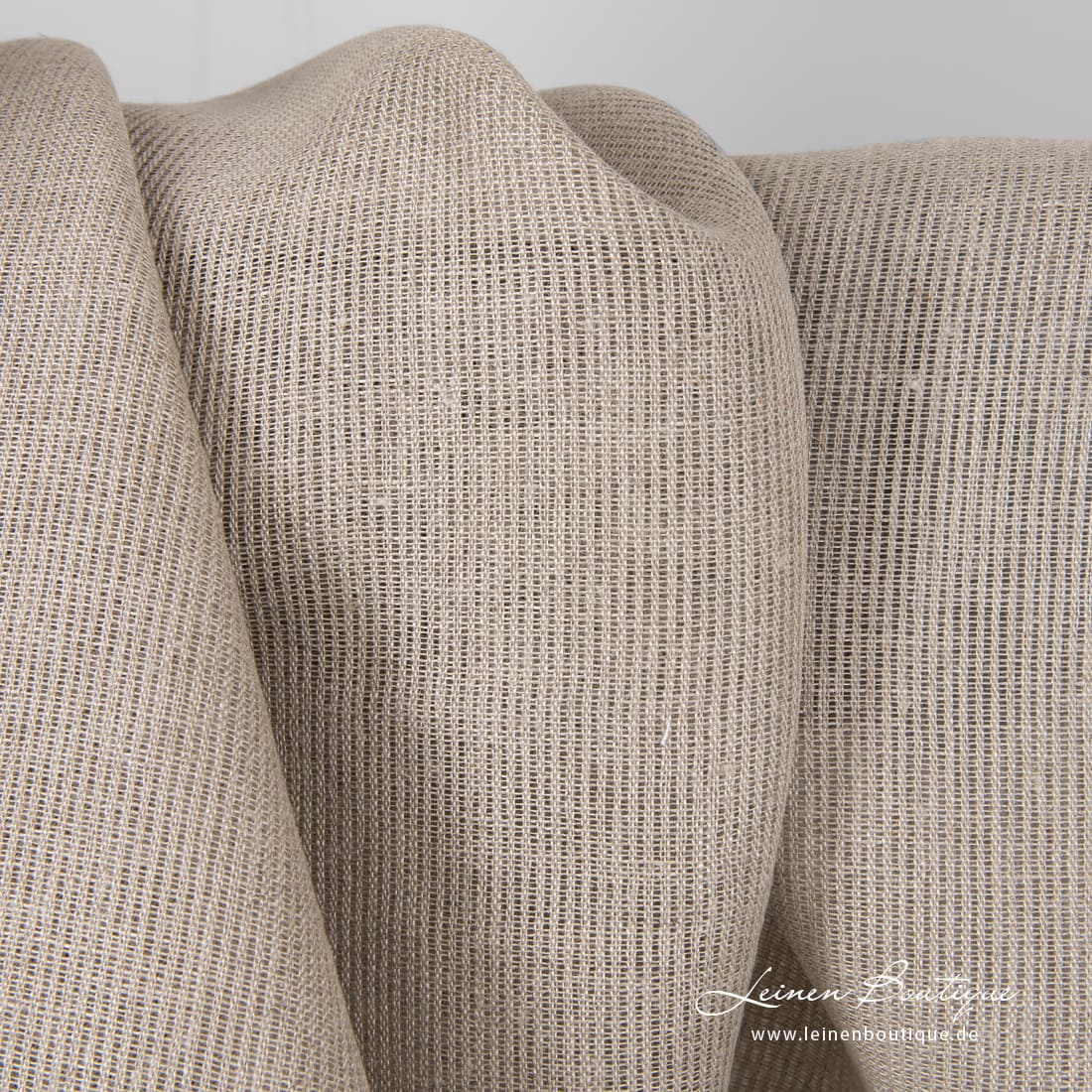 Bemerkung: Für diesen Stoff haben wir natürliches, ungefärbtes (naturgraues) Leinengarn verwendet. Die Farbe Naturgrau kann jedes Mal anders sein (Das hängt von Anbaubedingungen des Flachses ab.), deshalb kann Ihr bestellter Stoff vom Foto etwas abweichen. Bei einer Nachbestellung kann es hier auch zu Farbabweichungen kommen.