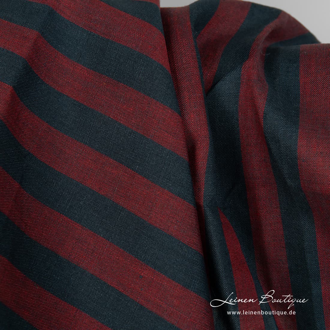 • Leinenstoff rot-blau gestreift zum Nähen von Kleidung und Heimtextilien