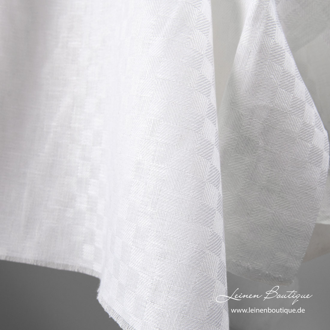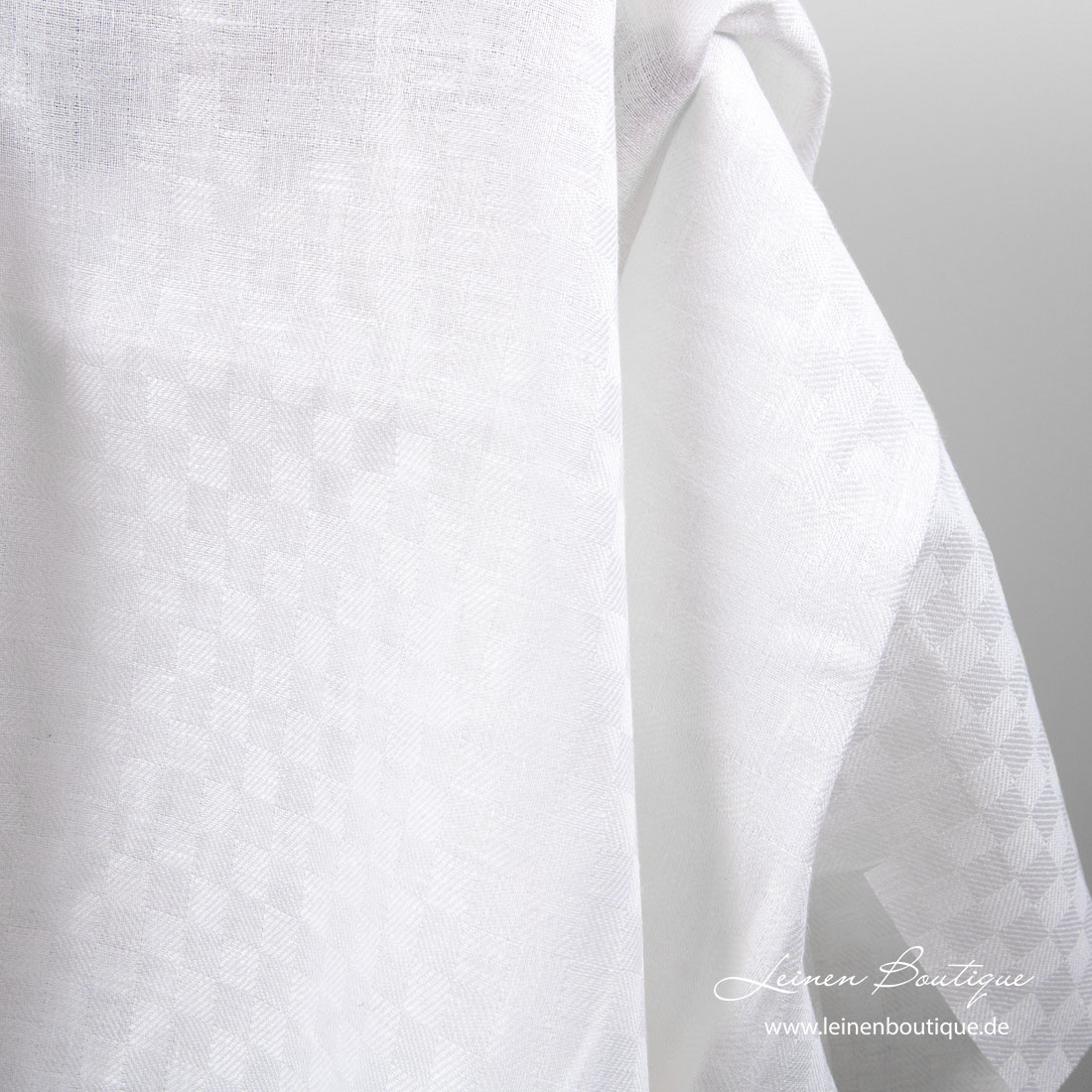 Leinenstoff schneeweiß kariert ist reißfest, dicht, mitteldick. Größe eines Karos 1cm x 1cm. Für Bekleidung, Tischwäsche, Küchenschürzen, Deko-Kissenhüllen.