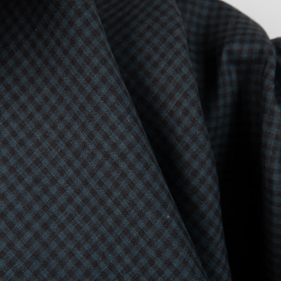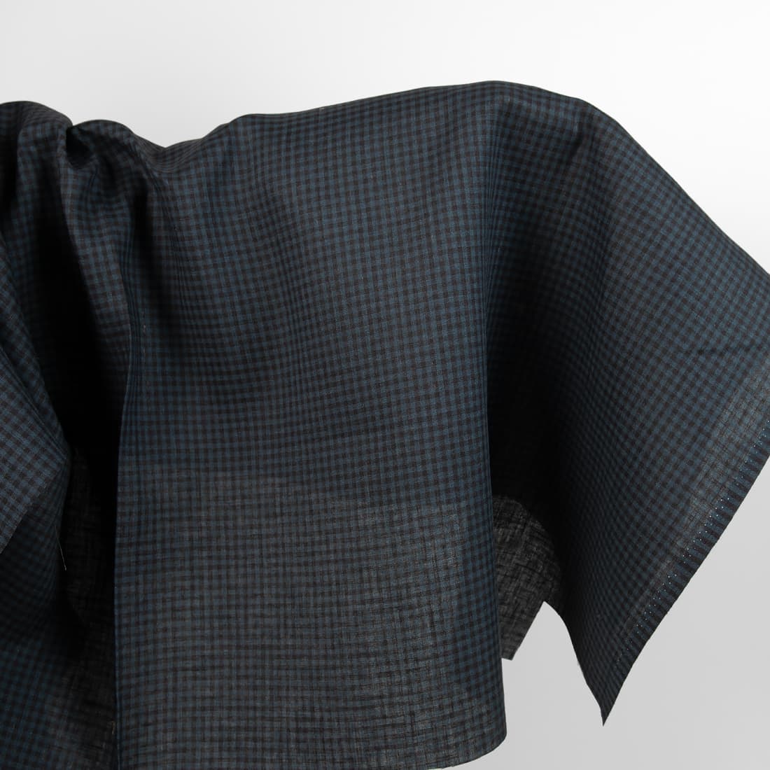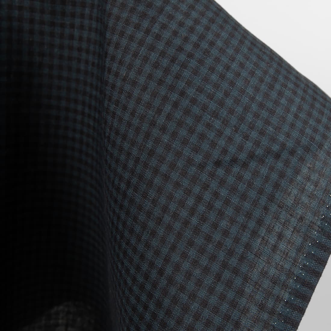 • Fein karierter Leinenstoff, aus schwarzem und dunkelblauem Garn gewebt