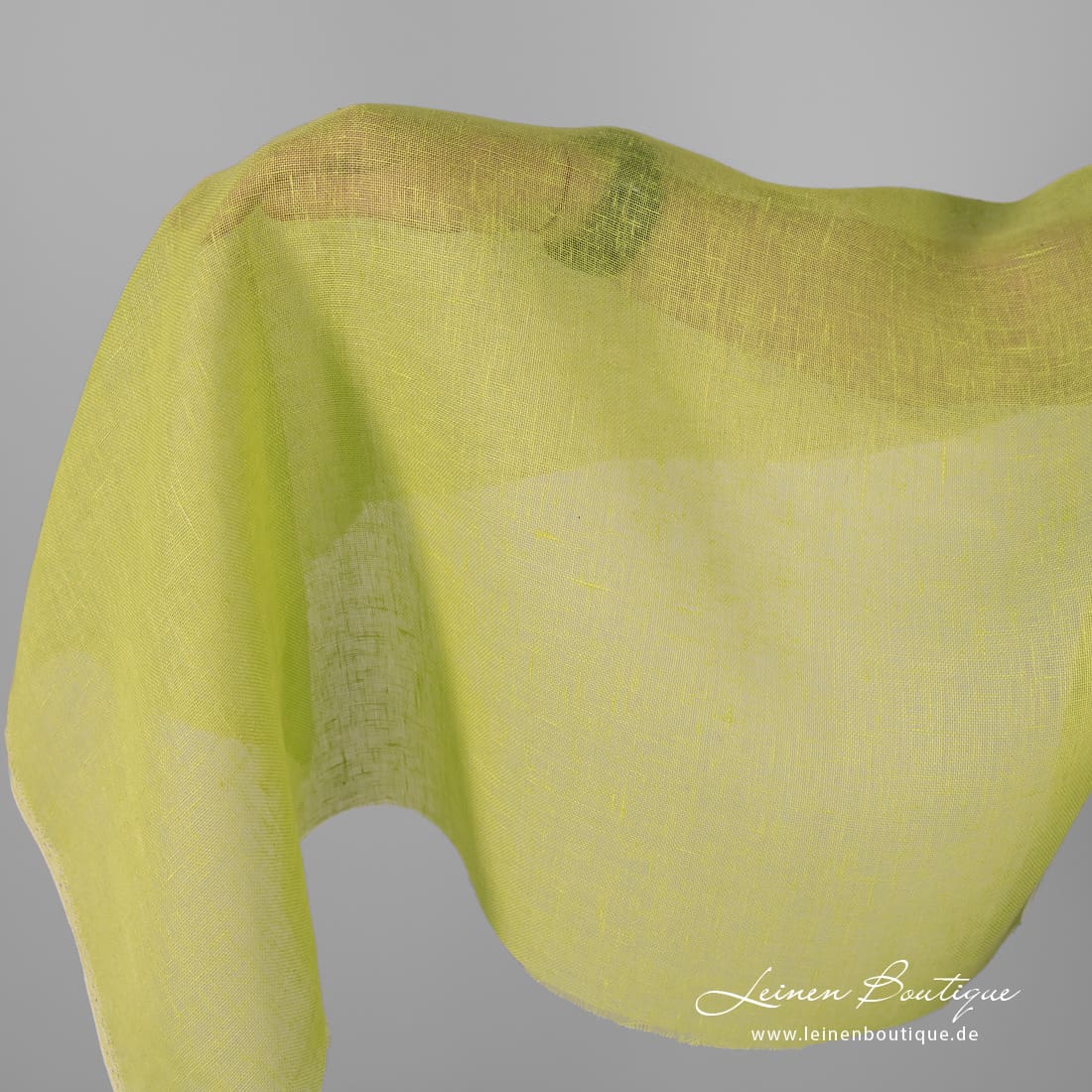 Leinenstoff transparent apfelgrün (in hellem Gelblichgrün) ist leicht, offen gewebt, deshalb passt besonders gut zum Nähen von Gardinen, Schals.