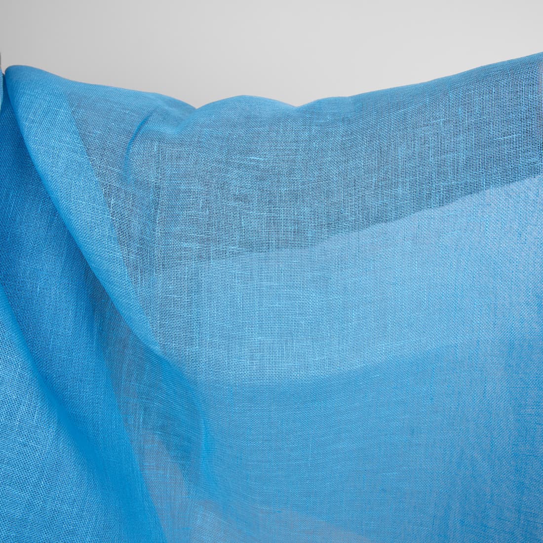 • Leinenstoff transparent intensiv himmelblau, zum Nähen von Gardinen und Schals geeignet