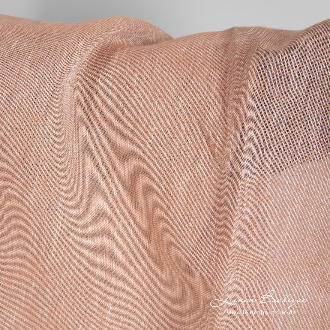 Leinenstoff transparent pfirsich-weiß meliert: in dem Stoff haben wir rosabräunliches und weißes Garn zusammengewebt. Leicht, offen gewebt, durchsichtig, deshalb zum Nähen von Gardinen und Schals geeignet.