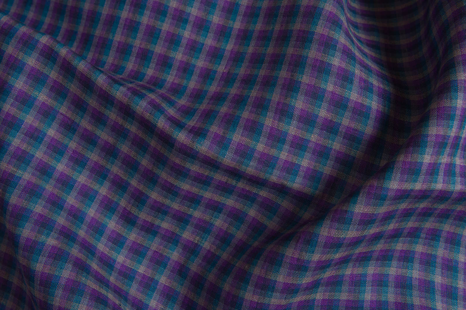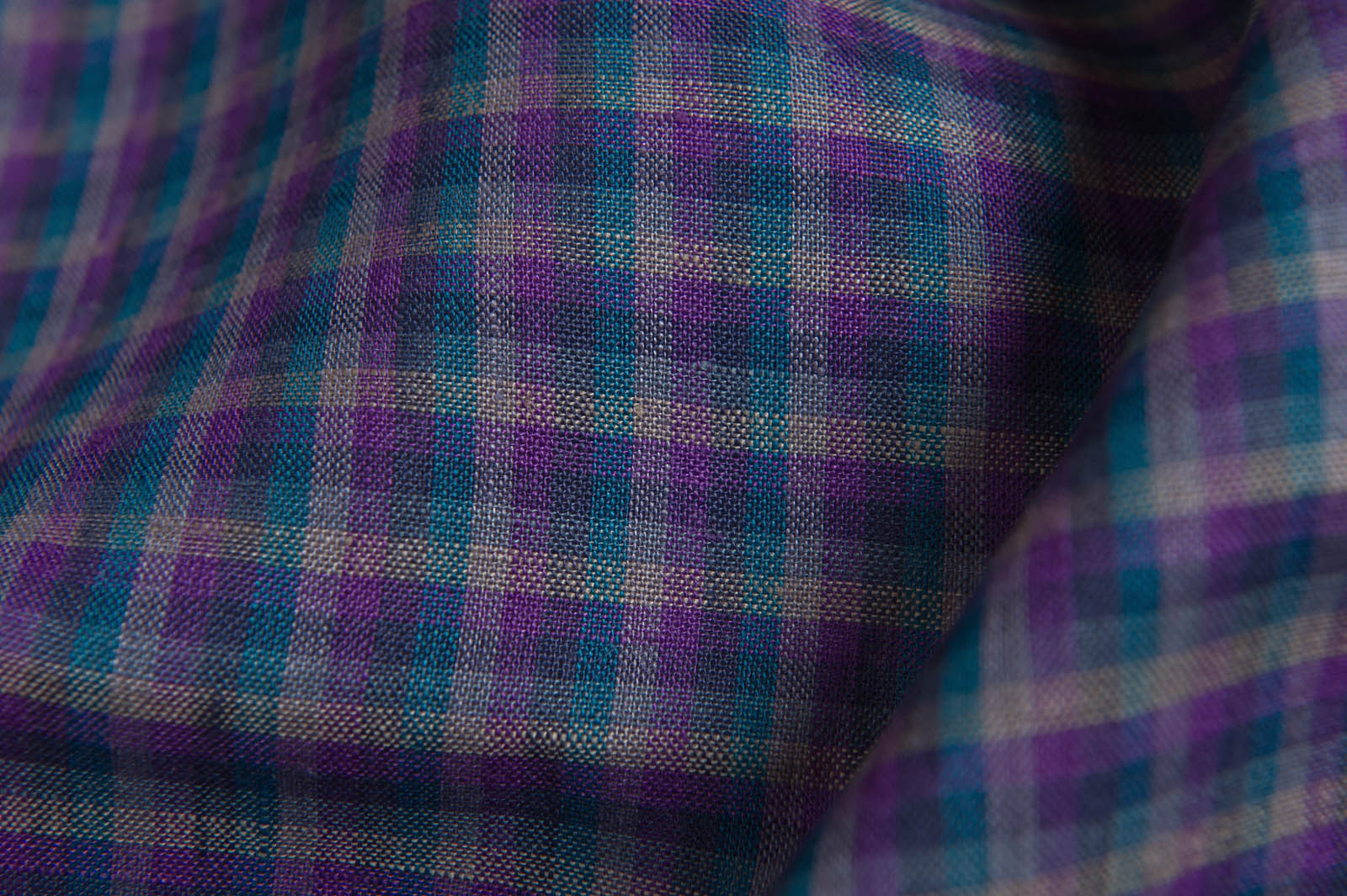 100% Leinenstoff, in kleinen (0,5 x 0,5cm) Karos in Lila, Violett, Dunkeltürkis, Dunkelblau, Hellbraun und Blaugrau gewebt. Verspielte Farben und Karomuster passt besonders gut für Kinderbettwäsche, Kissenhüllen, Kleidung. Der Stoff ist reißfest, dicht, mitteldick.