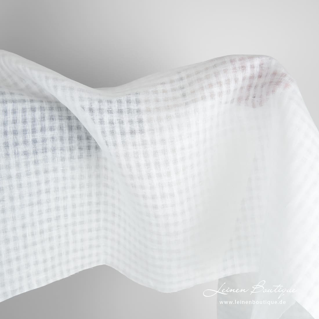 • Schneeweißes Reinleinen mit durchsichtigen Karos