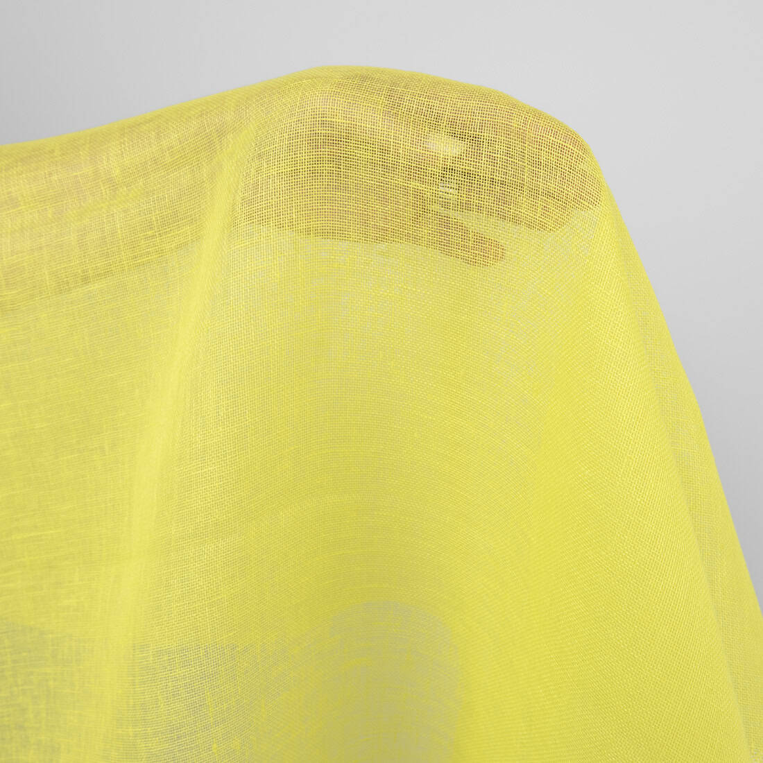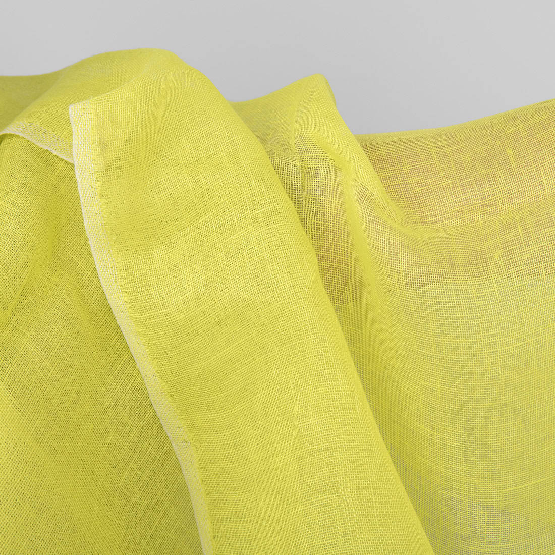 Transparenter 100% Leinenstoff in Neon-gelb (grelles Grüngelb) ist in einer Leinwandbindung ganz offen gewebt, leicht, dünn. Ideal für Schals, Accessoires oder Gardinen geeignet.
