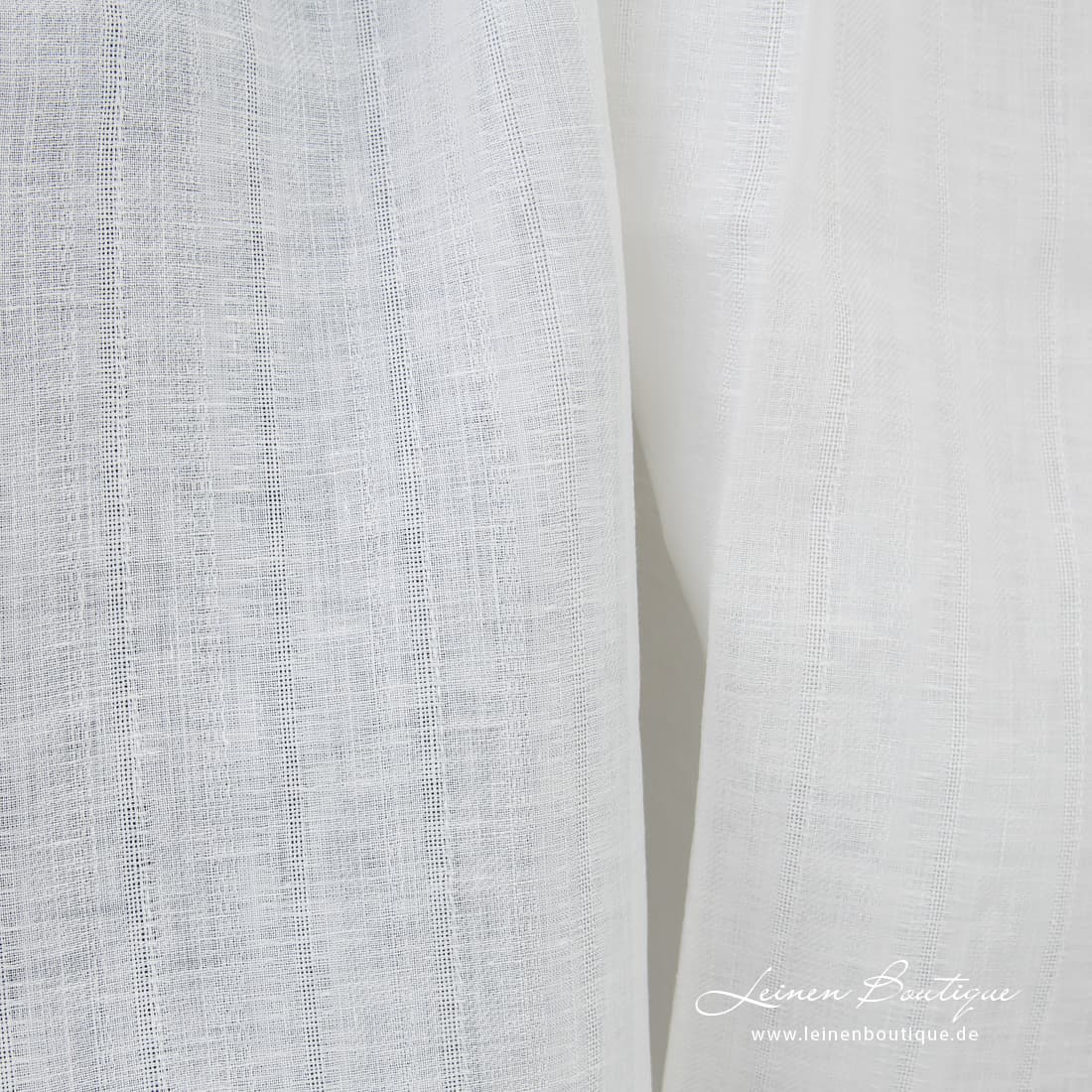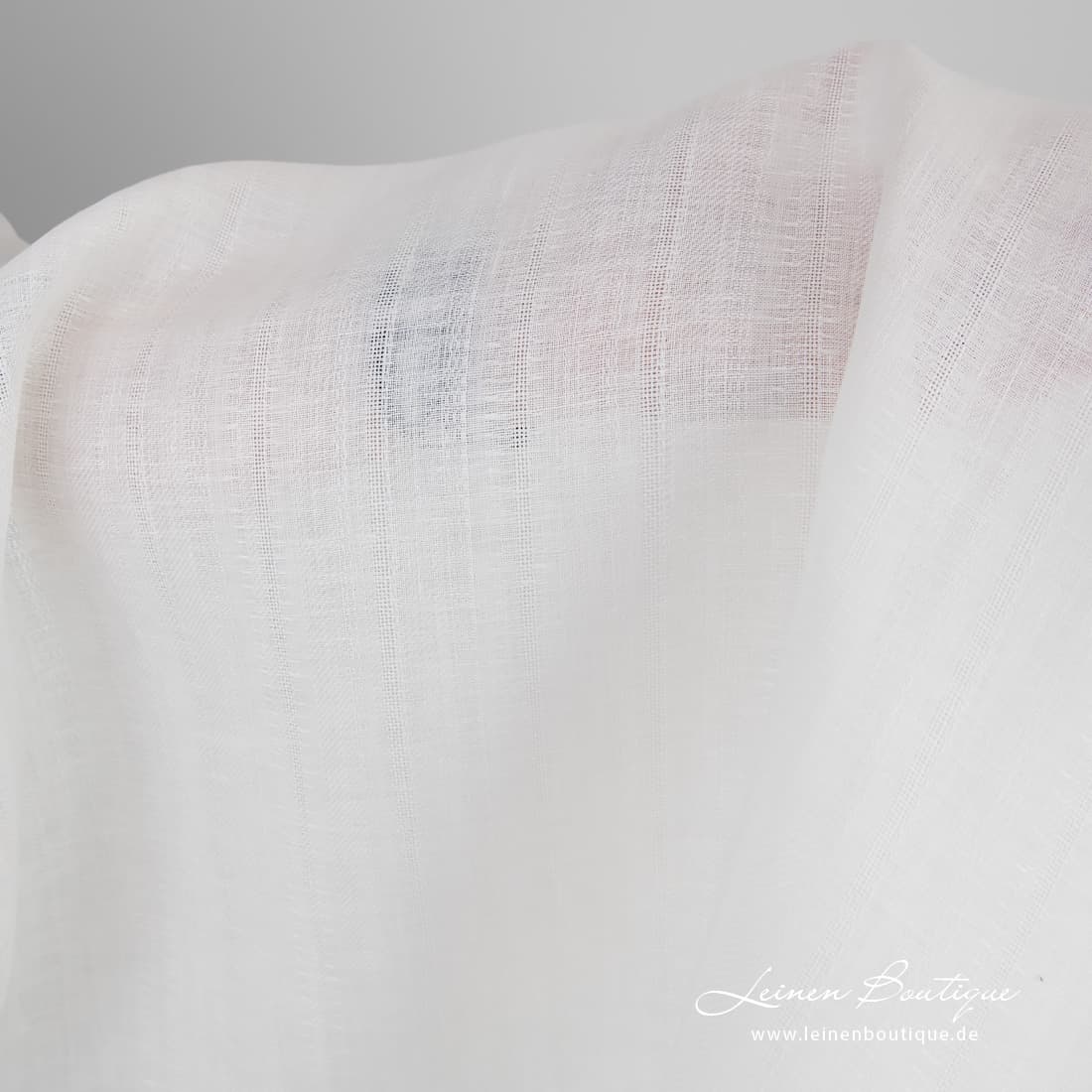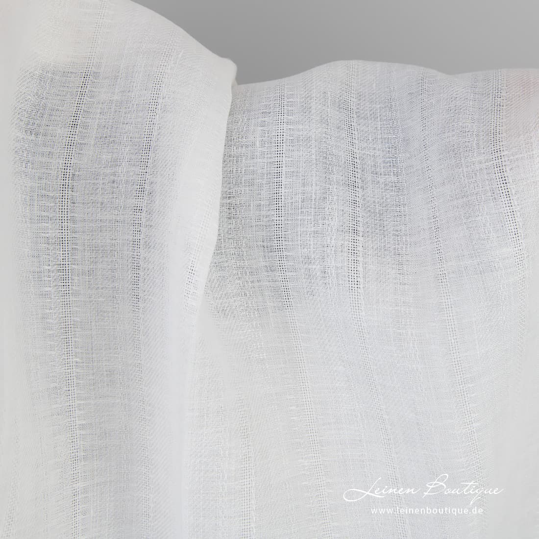 • Milchweißes Reinleinen mit vertikalen gemusterten Streifen