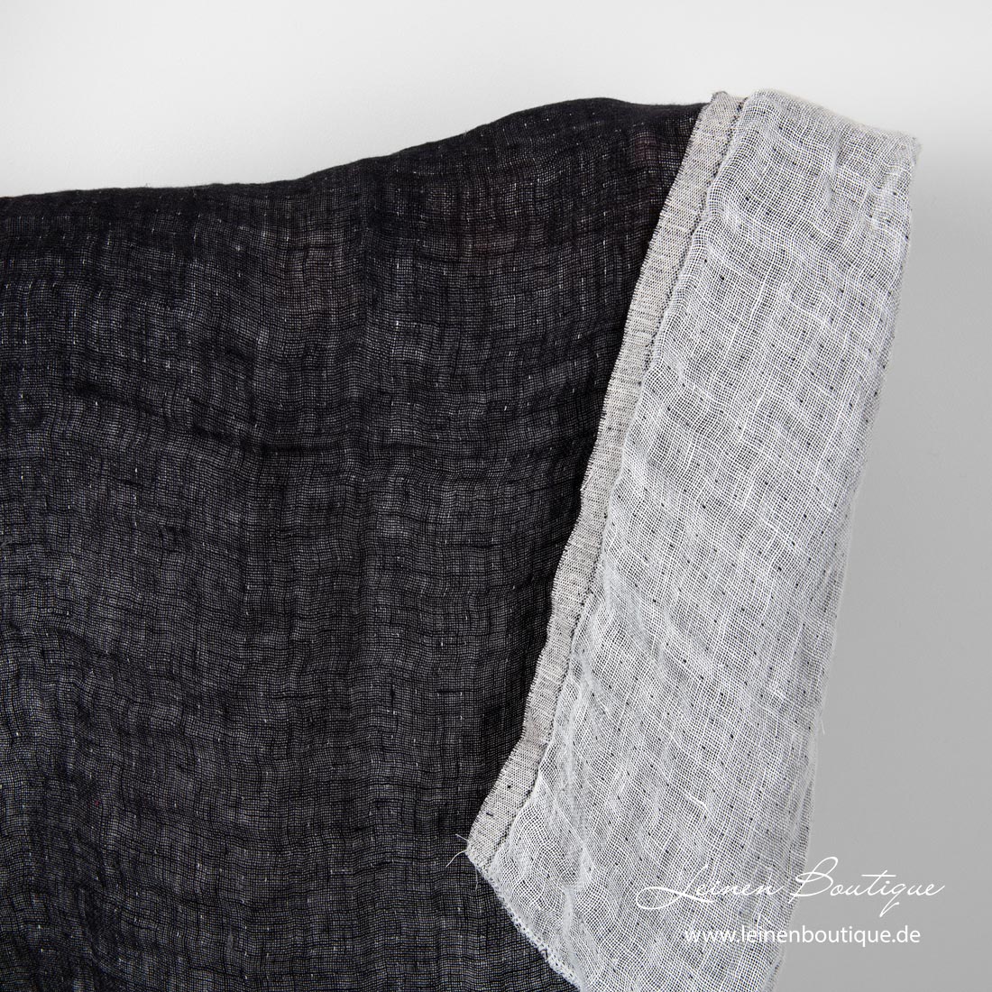• Schwarze Seite des doppelseitigen Leinenstoffes