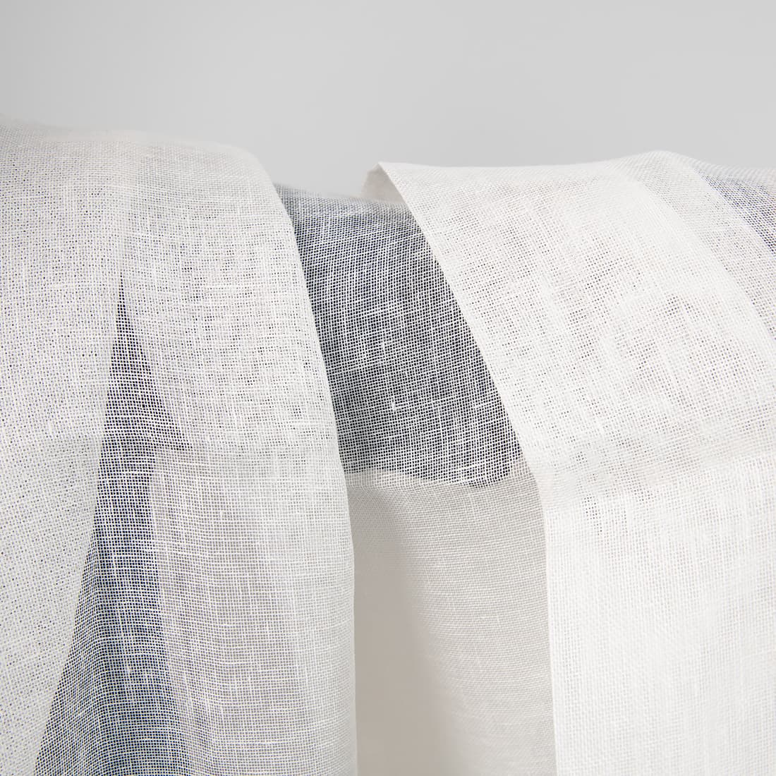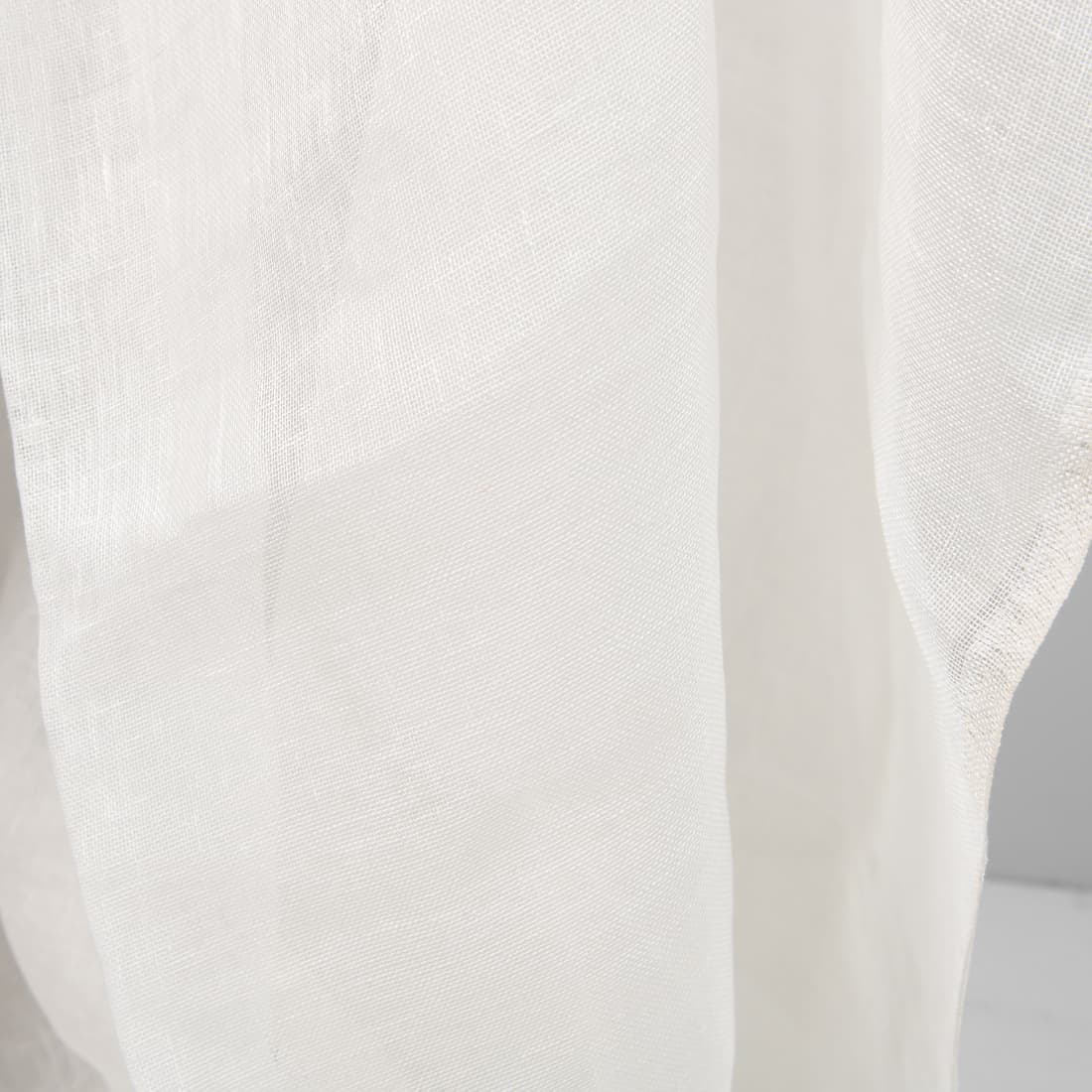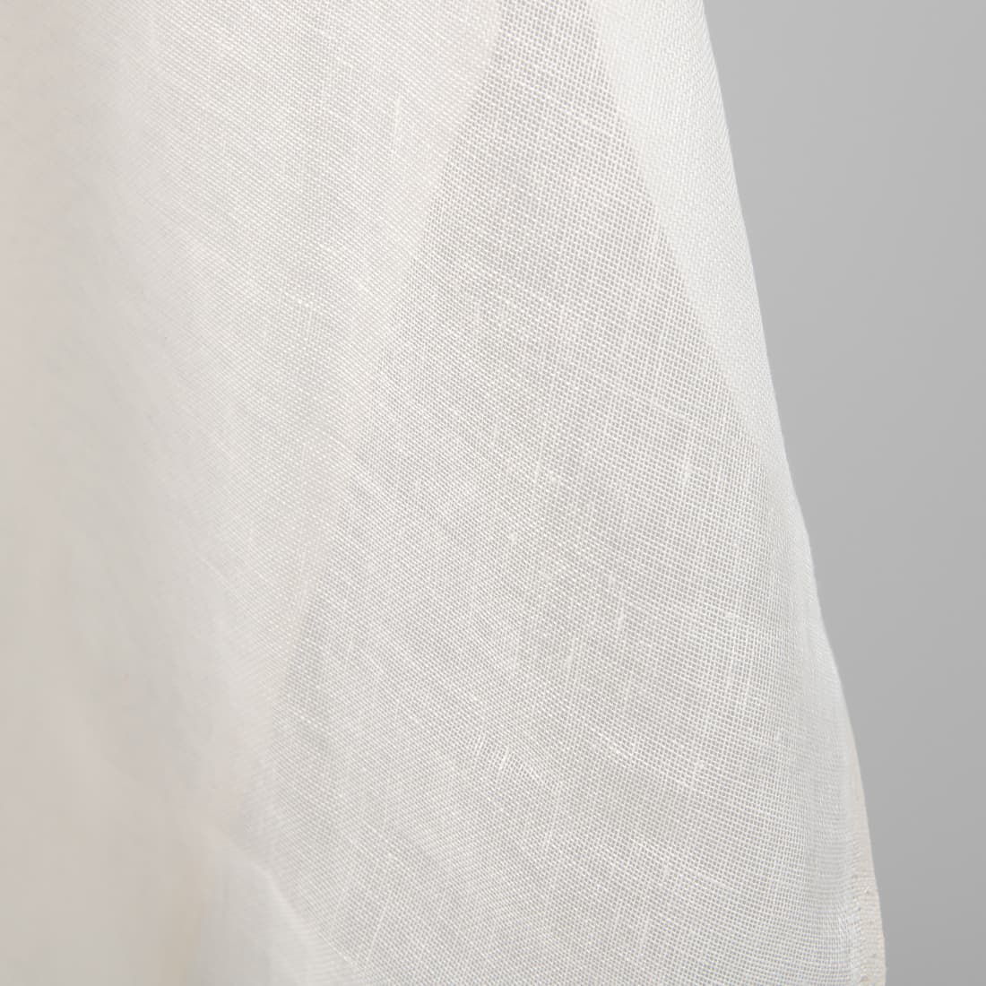 Milchweißer (gelblich weißer bzw. cremeweißer) Leinenstoff in einfachster Leinwandbindung. Durchsichtig, besonders offen gewebt und leicht, perfekt fürs Nähen von Gardinen oder Schals.