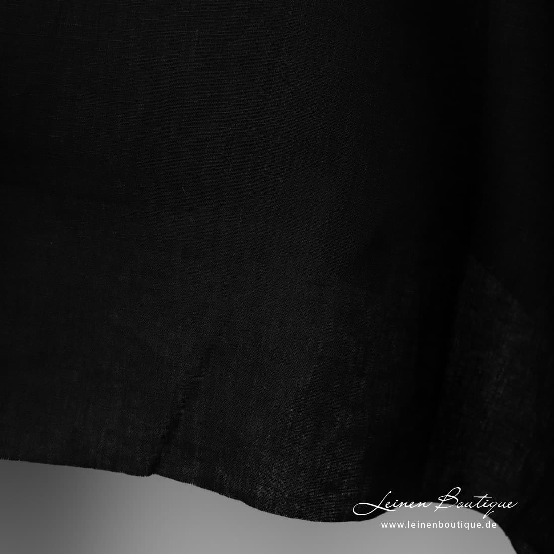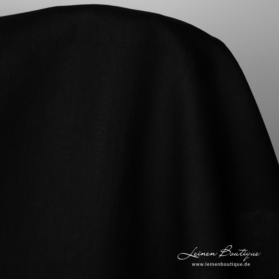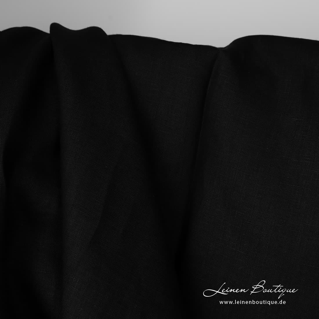Leinenstoff in kräftigem Schwarz ist mittelschwer, dicht, reißfest. Besonders für Bekleidung, Accessoires, Taschen auch Gardinen und Vorhänge geeignet.
