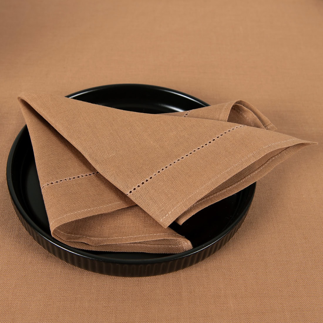 • Halbleinen-Serviette hellbraun mit Hohlsaum