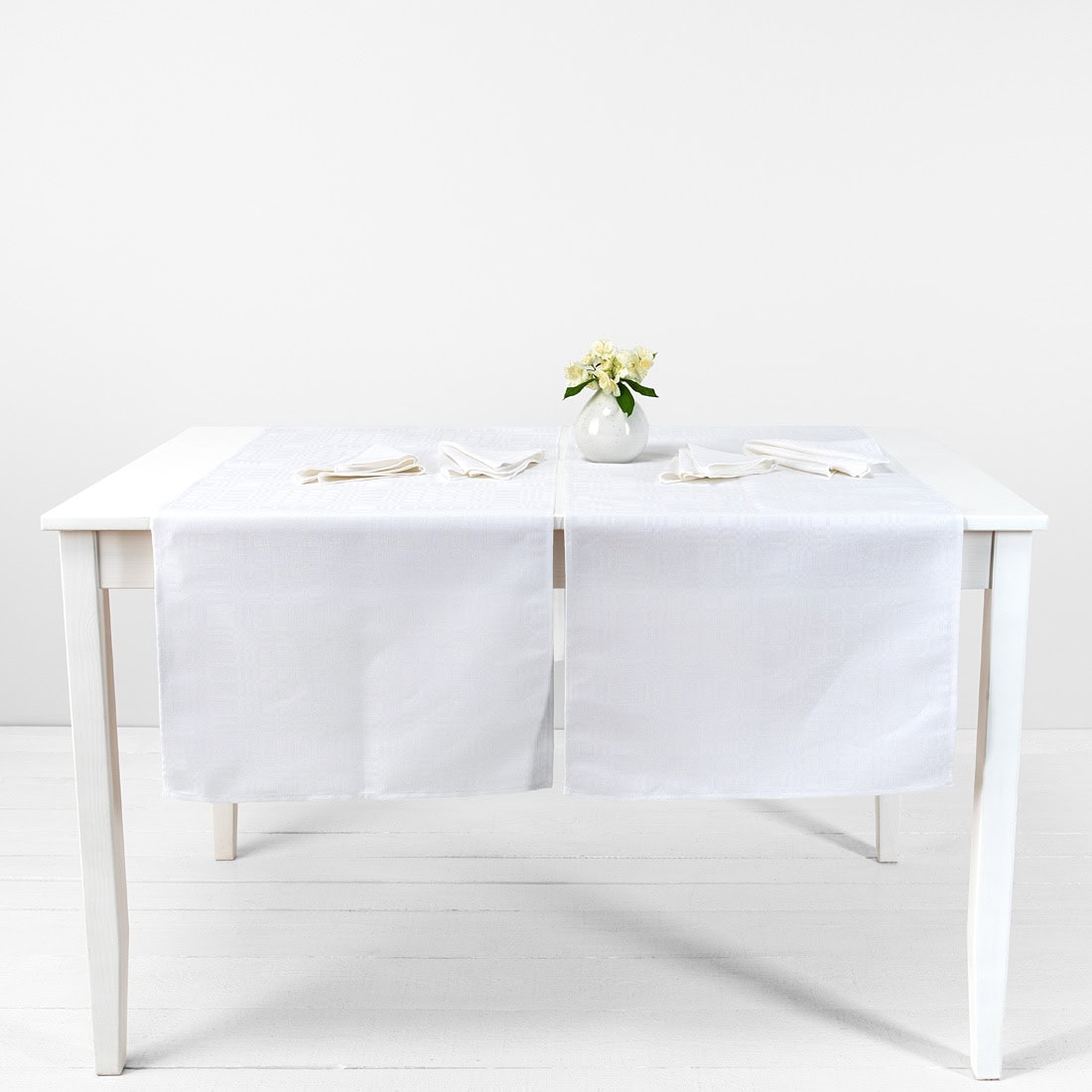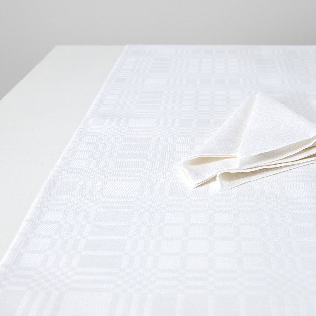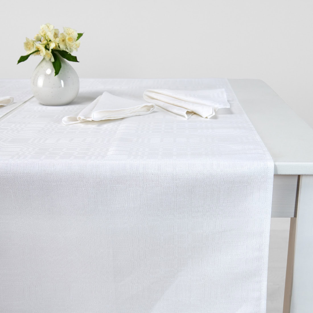 • CAMPO Halbleinen Tischläufer schneeweiß kariert, in Köperbindung gewebt