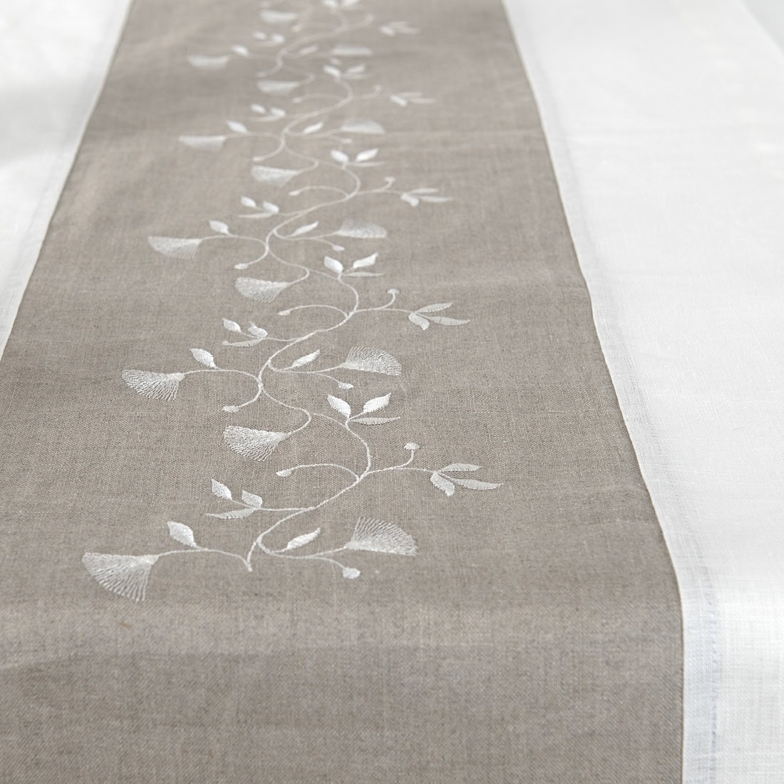 - Farbe: die Kanten aus milchweißem (gelblichweißem) Leinenstoff, Mitte naturgrau (ungefärbtes, bräunlichgraues Garn zusammengewebt)
