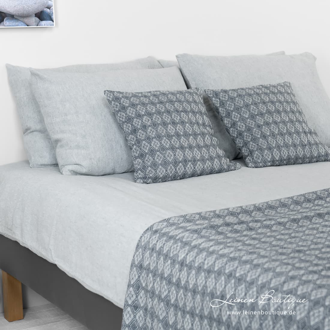 - Farbe: weißes und blaugraues Garn zusammengewebt, Melange