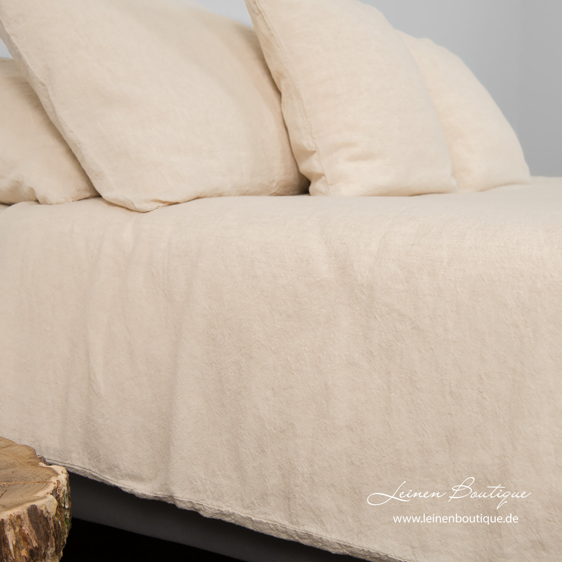 - Bräunlicher Bettbezug mit Leinenspitze mit Knopfverschluss unten.