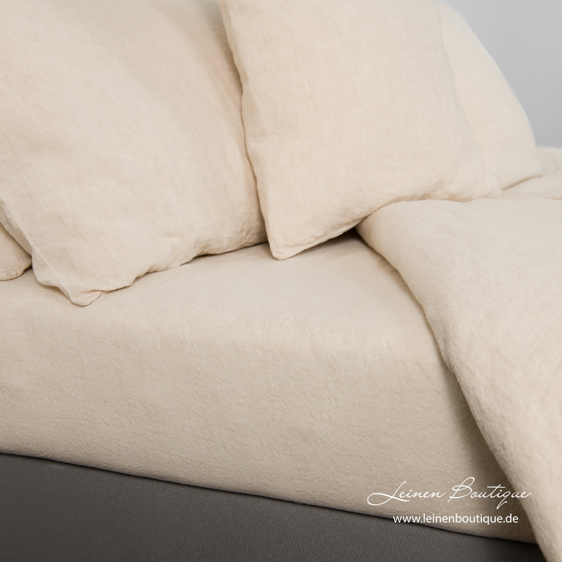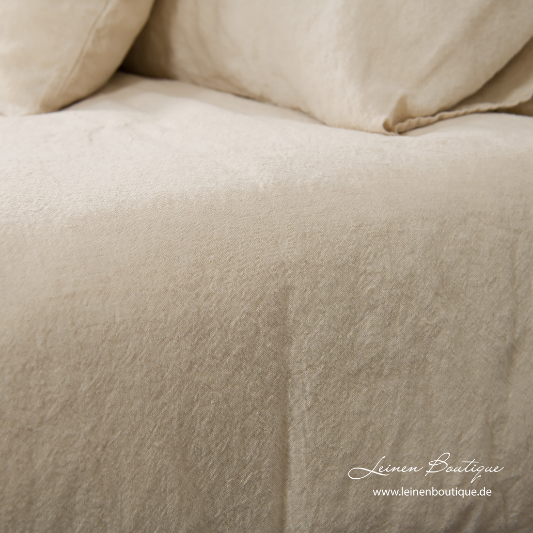 Bräunliche Bettwäsche aus meliertem Stoff, den wir aus hellbraunen, beige Leinen- und weißen Baumwollgarnen gewebt haben. Der Stoff wurde auf spezielle Weise vorgewaschen, deshalb passt ideal für die Bettwäsche: er ist mit weichem Griff, hautfreundlich, läuft beim Waschen nicht mehr ein. Die unglatte Oberfläche, die der Stoff dank des Waschens bekommen hat, befreit Sie vom Bügeln. Sie können gerne bügel, aber das muss nicht unbedingt sein. Zarte Farbe und natürlicher Leinen-Baumwollstoff: die Bettwäsche ist für ein gemütliches und stilvolles Zuhause. Wir empfehlen zu bestellen!