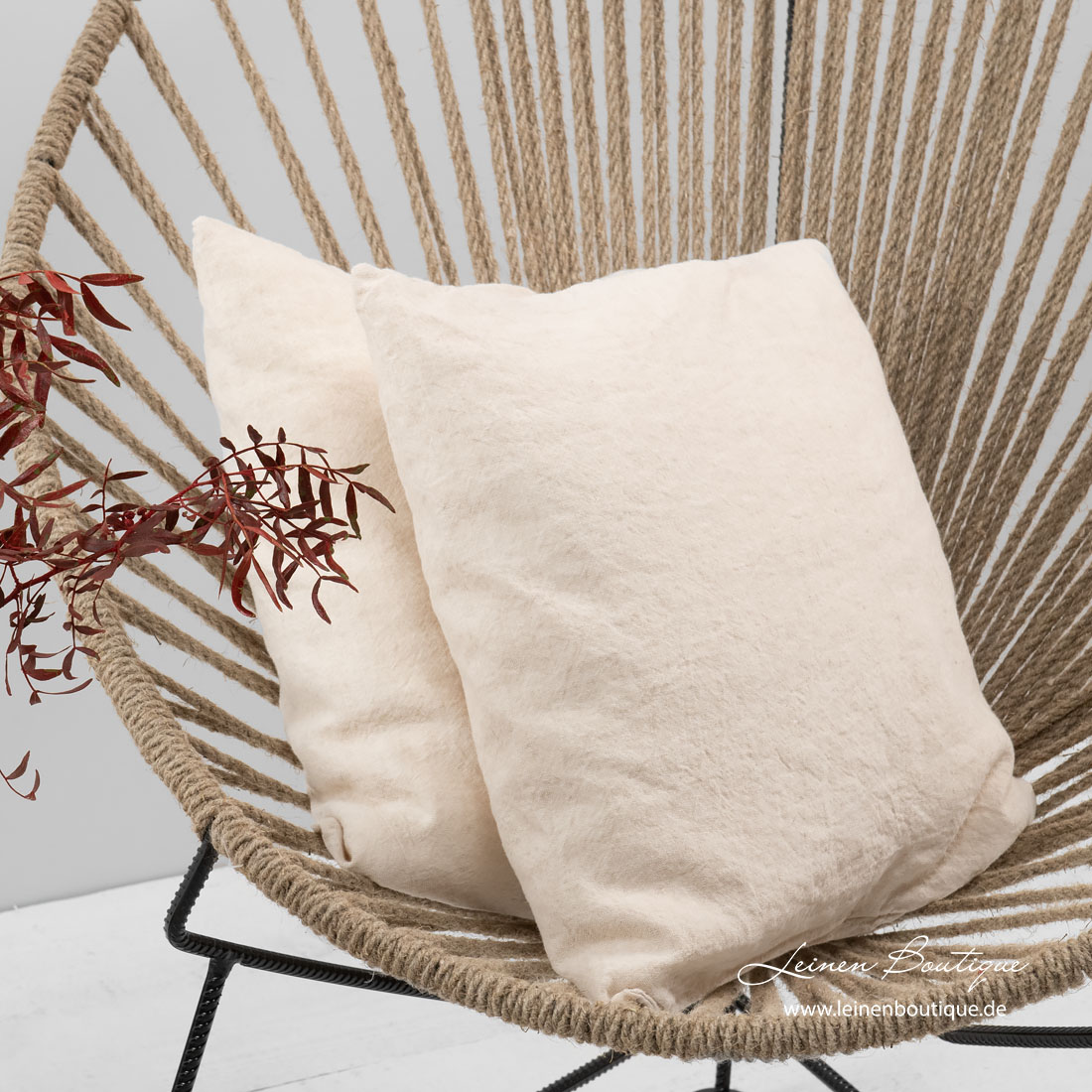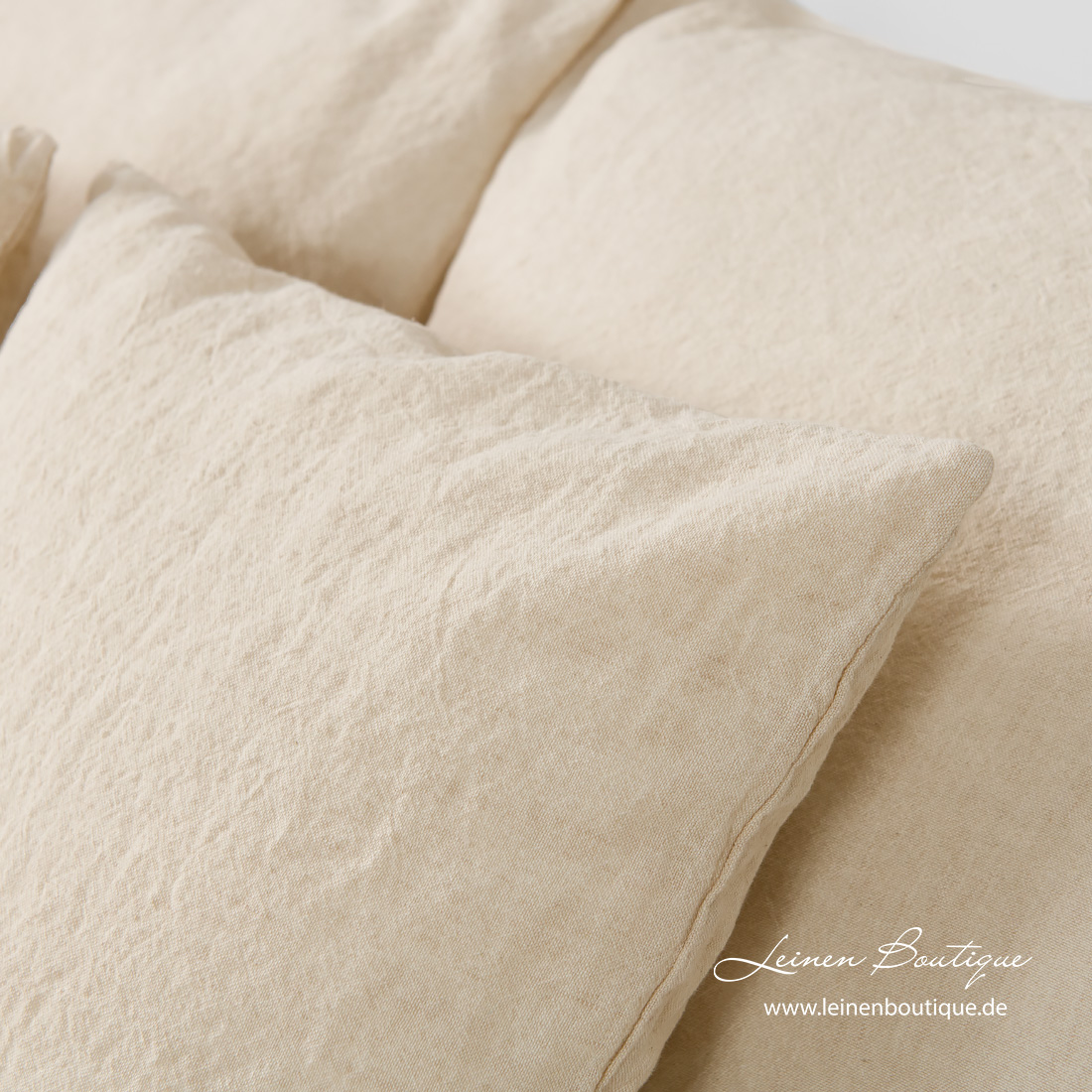 - Bräunlicher Kissenbezug mit Leinenspitze mit Hotelverschluss.