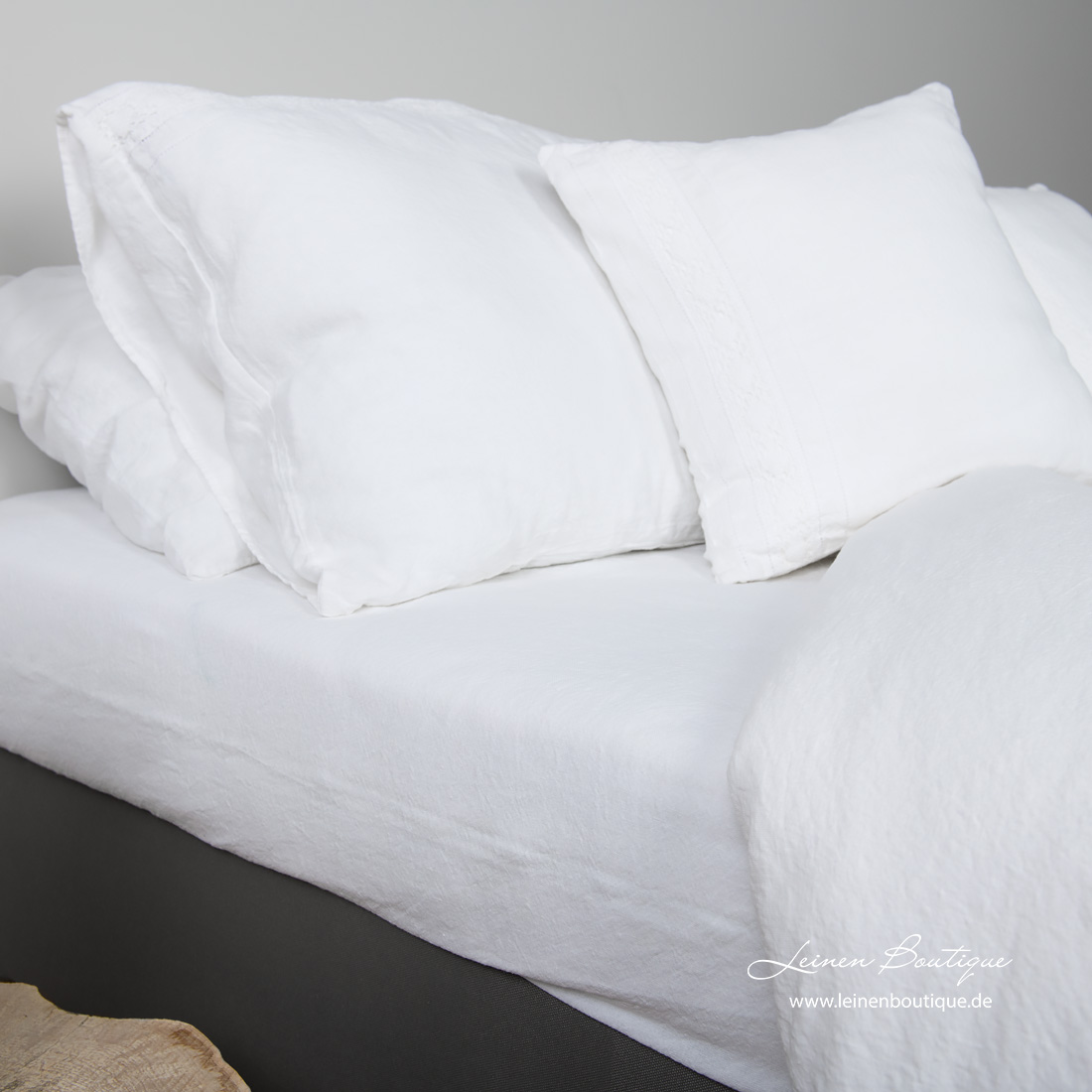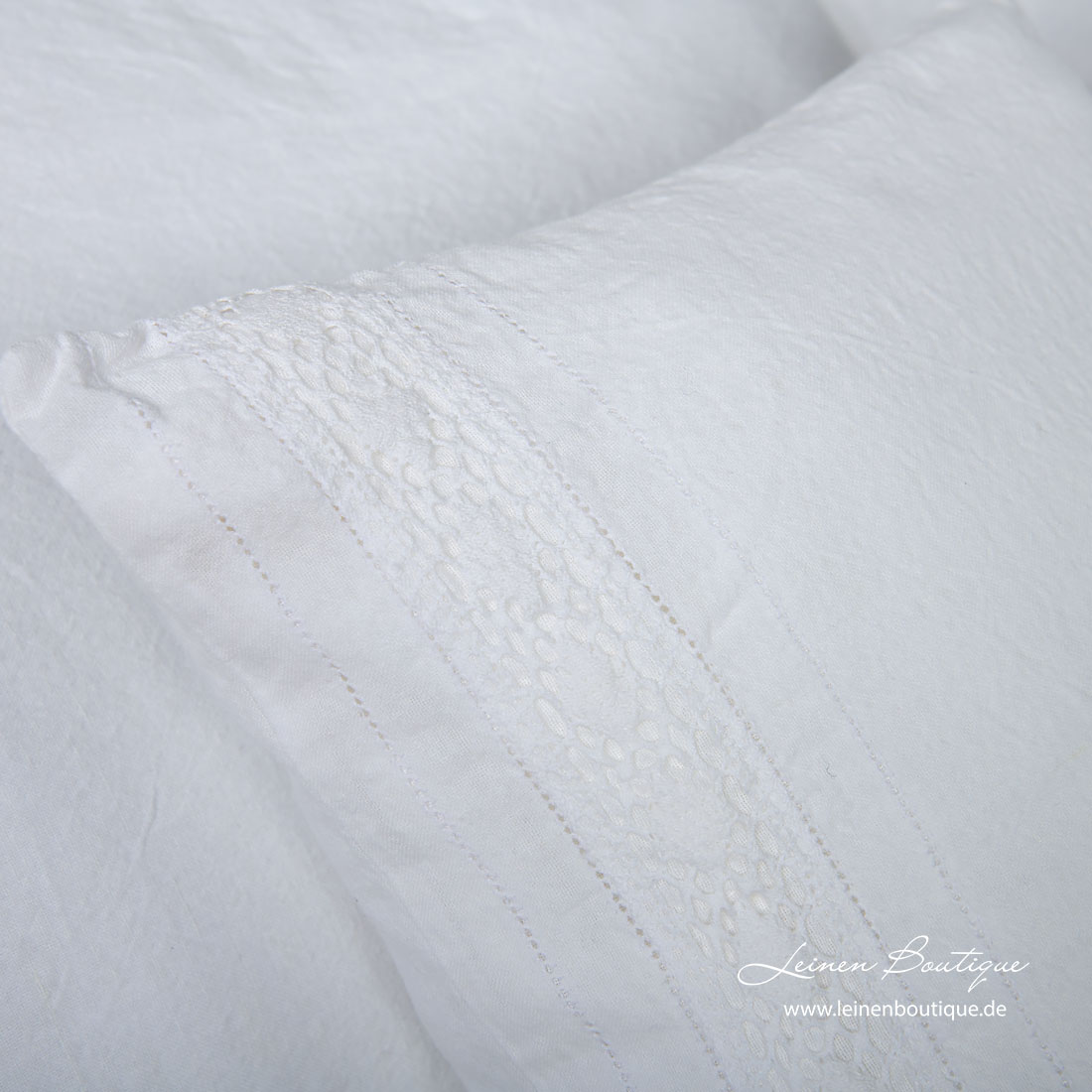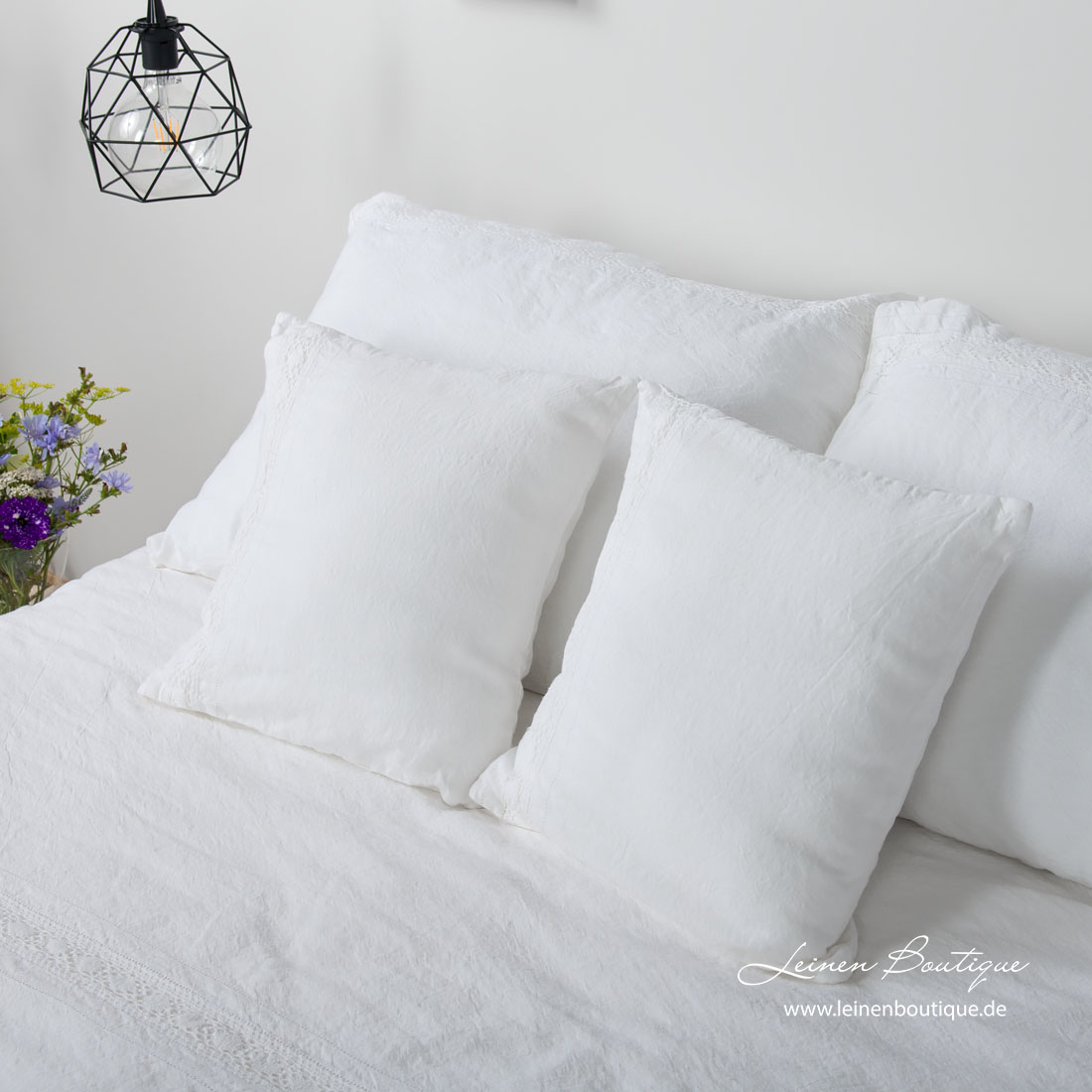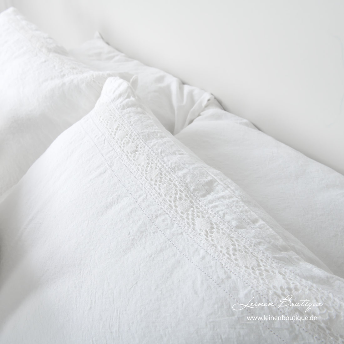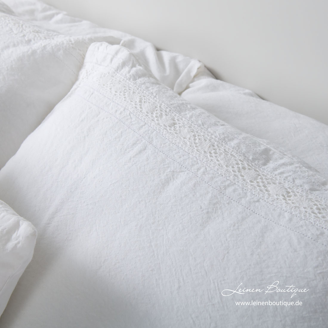 - Schneeweißer Kissenbezug mit Leinenspitze mit Hotelverschluss.