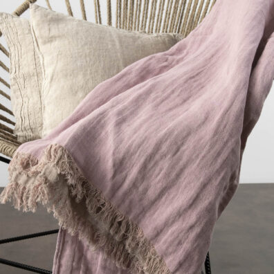 Das Wende-Plaid aus Leinen-Baumwollmix ist beidseitig verwendbar: Eine Seite ist lila mit rosa Schattierung, die andere braungrau. Mit Fransen an den kurzen Kanten. Weicher und fluffiger, vorgewaschener Plaid in zwei wunderschönen Farben: tolle und praktische Geschenkidee.